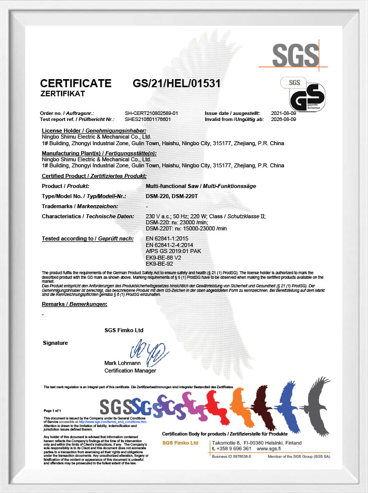 • Сертификат SMD100001-300W GS