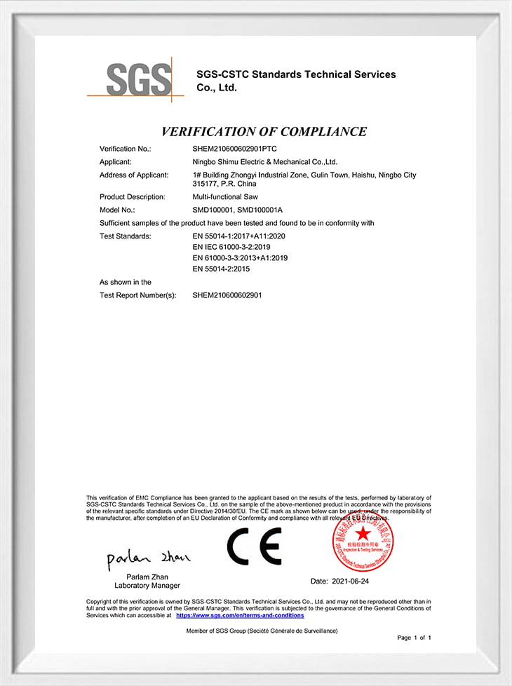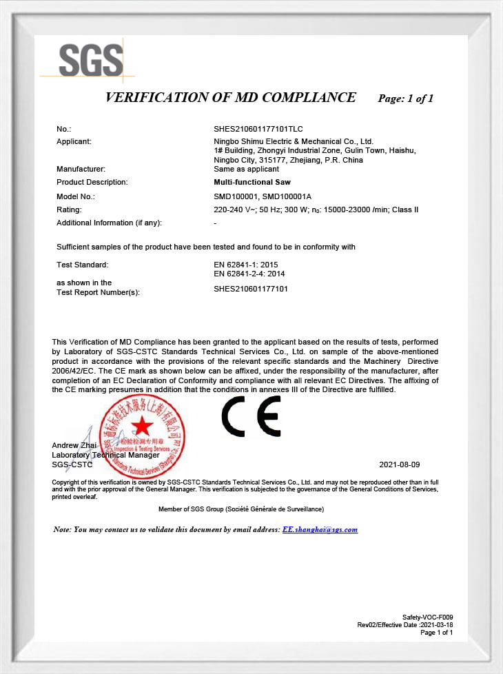 • Сертификат CE-MD SMD100001-300W