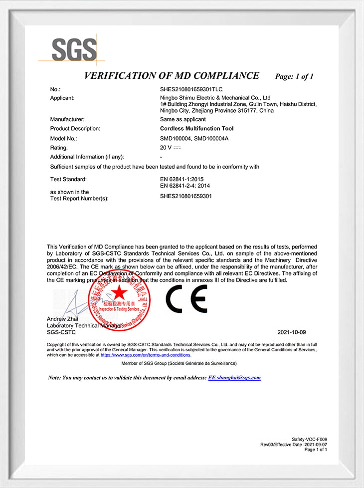 • Сертификат CE-MD SMD100004-18V
